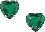 10K Gold Heart Shaped Created Emerald Earrings