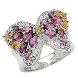 3.95 Carat Genuine Citrine & Rhodolite Garnet Sterling Silver Butterfly Ring