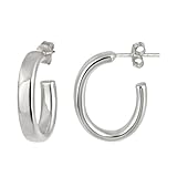 A perfect everyday pair, these small oval hoop earrings shine in bright sterling silver. They have a flat ribbon design and feature posts with friction backings for a comfortable, secure fit.
