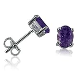 Oval Amethyst Stud Earrings Set in Sterling Silver 1.70ct tw